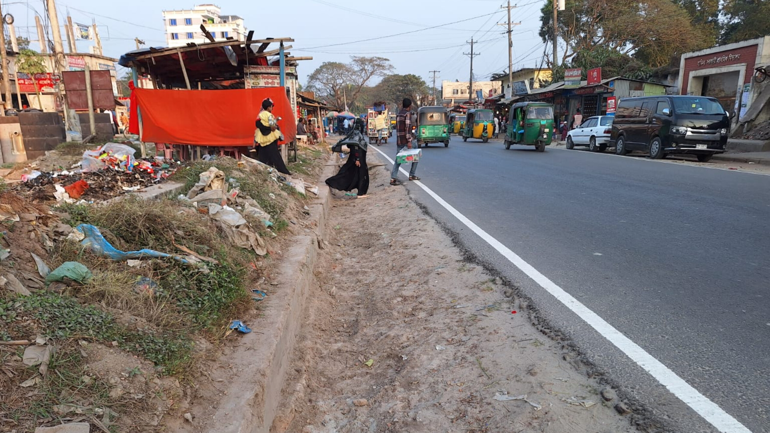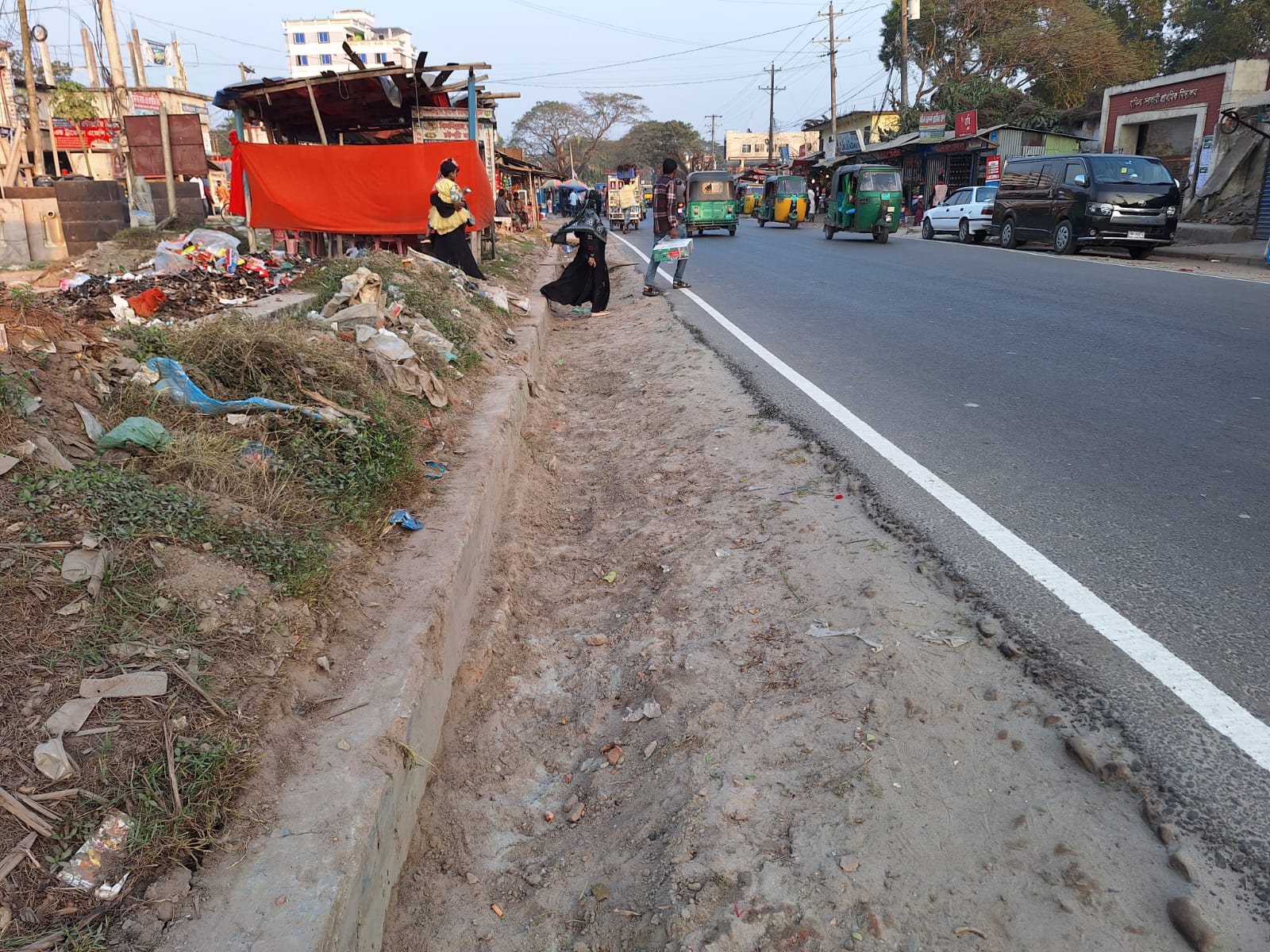 সওজ ঠিকাদারের কাণ্ড : ড্রেনের মাটি ড্রেনের কাঁধে