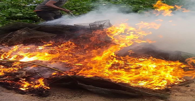মৎস্য রক্ষায় ডাকাতিয়া নদীতে প্রশাসনের অভিযান দেড় লাখ টাকার চায়না রিং জাল পোড়ানো হলো
