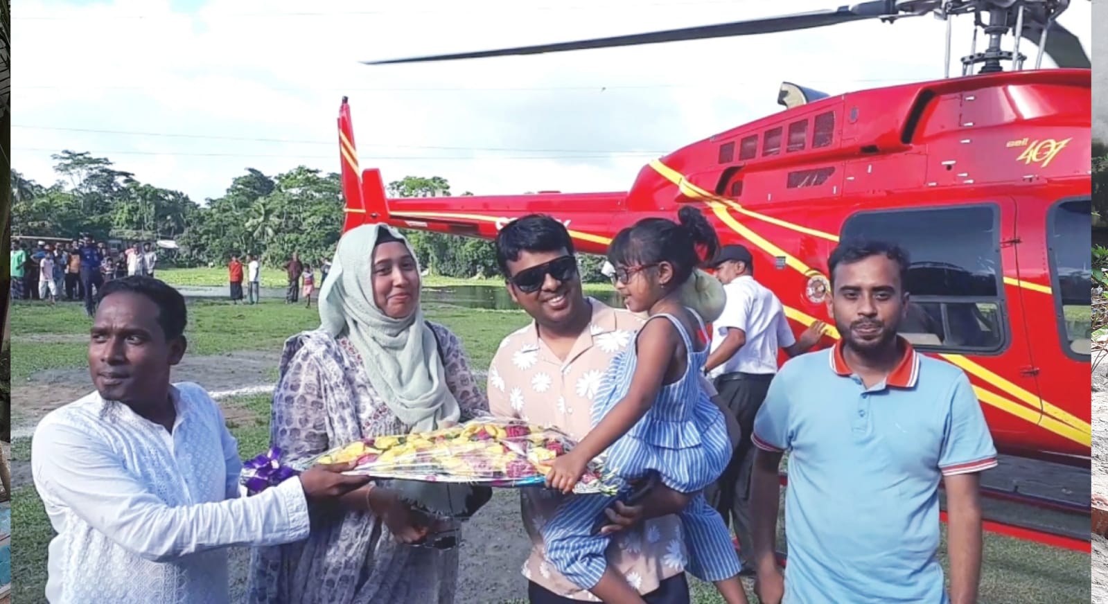 ফরিদগঞ্জে মায়ের কথা রক্ষা করতে হেলিকপ্টার নিয়ে আমেরিকা প্রবাসীর বাড়িতে আগমন