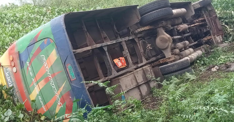 মতলবে নিয়ন্ত্রণ হারিয়ে জৈনপুর এক্সপ্রেস বাস খাদে, আহত ১২