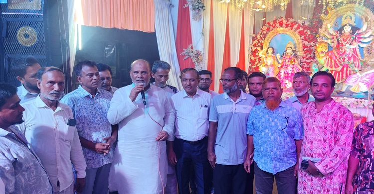 বিএনপি নেতা মোশারফ হোসাইনের পূজামণ্ডপ পরিদর্শন