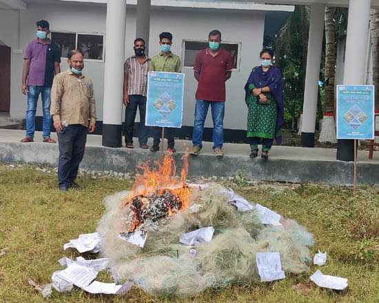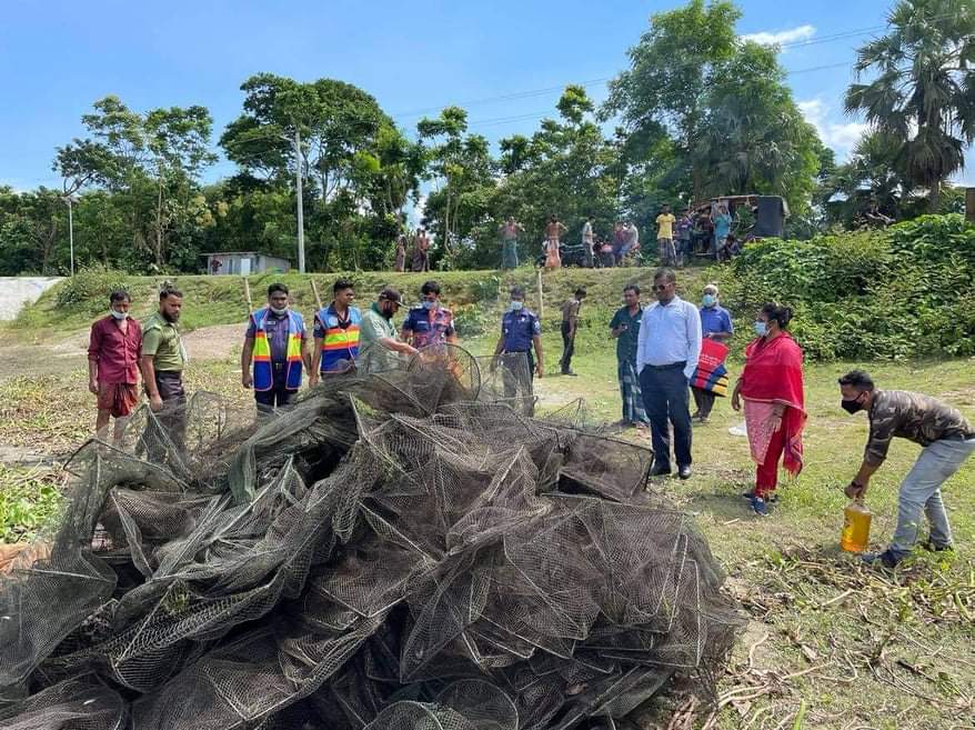 মতলবে ২৫ লাখ টাকা অবৈধ জাগ, মশারী জাল ও চায়না রিং চাই পুড়িয়ে বিনষ্ট
