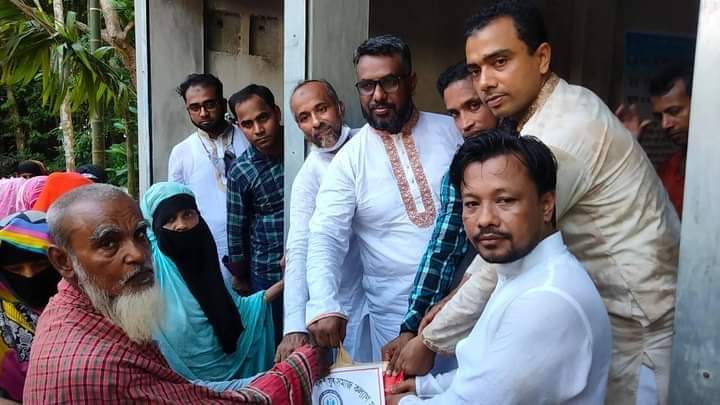 হাইমচরে আদর্শ যুব সমাজ কল্যান সংঘের ত্রান বিতরণ