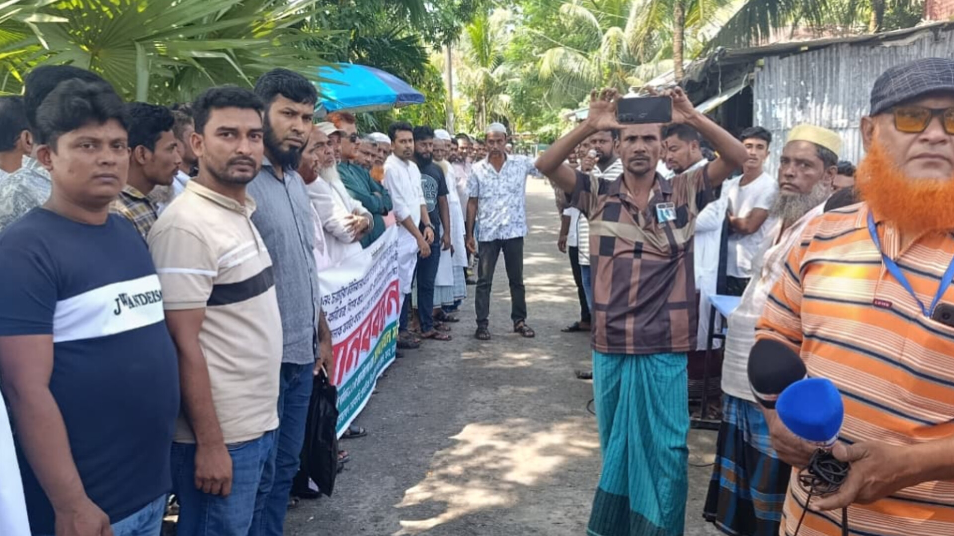 নোয়াখালীতে অস্থায়ী পুলিশ ক্যাম্প স্থাপনের দাবিতে বিক্ষোভ