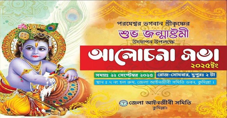 শ্রীকৃষ্ণের জন্মাষ্টমী উদযাপনে কুমিল্লা জেলা আইনজীবী সমিতির আলোচনা সভা ২২ সেপ্টেম্বর