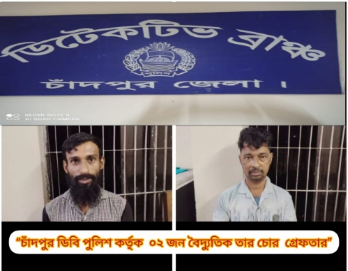 চাঁদপুর ডিবি পুলিশ কর্তৃক ২ জন বৈদ্যুতিক তার চোর গ্রেফতার