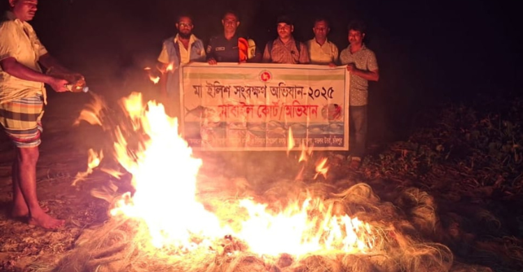 মতলব উত্তরের মেঘনা নদীতে ইলিশ রক্ষা অভিযানে ৩০হাজার মিটার কারেন্ট জাল আটক