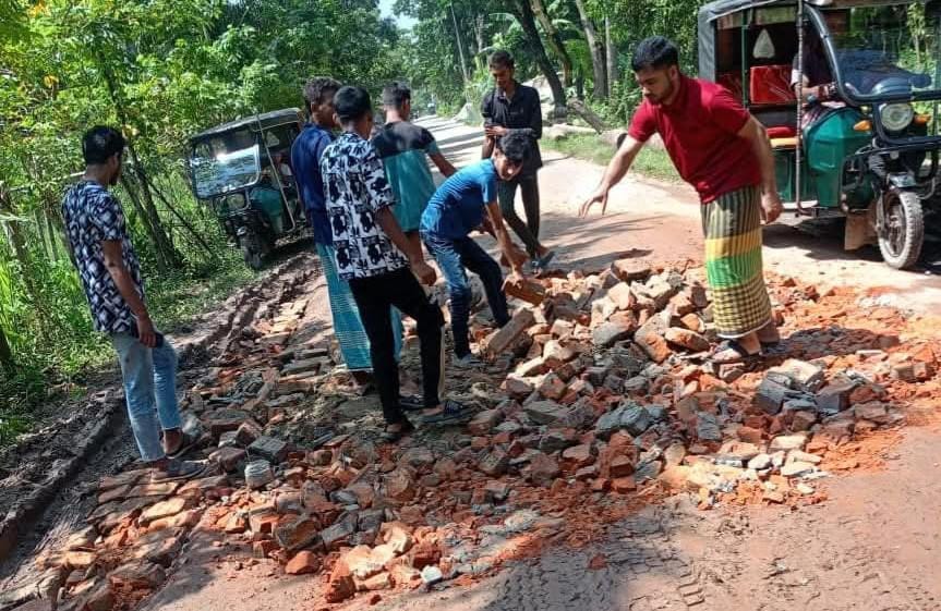 রায়পুর-খাসেরহাট ৭ কি.মি. সড়ক বেহাল : নিজ অর্থায়নে সংস্কার করলেন যুবদল নেতারা