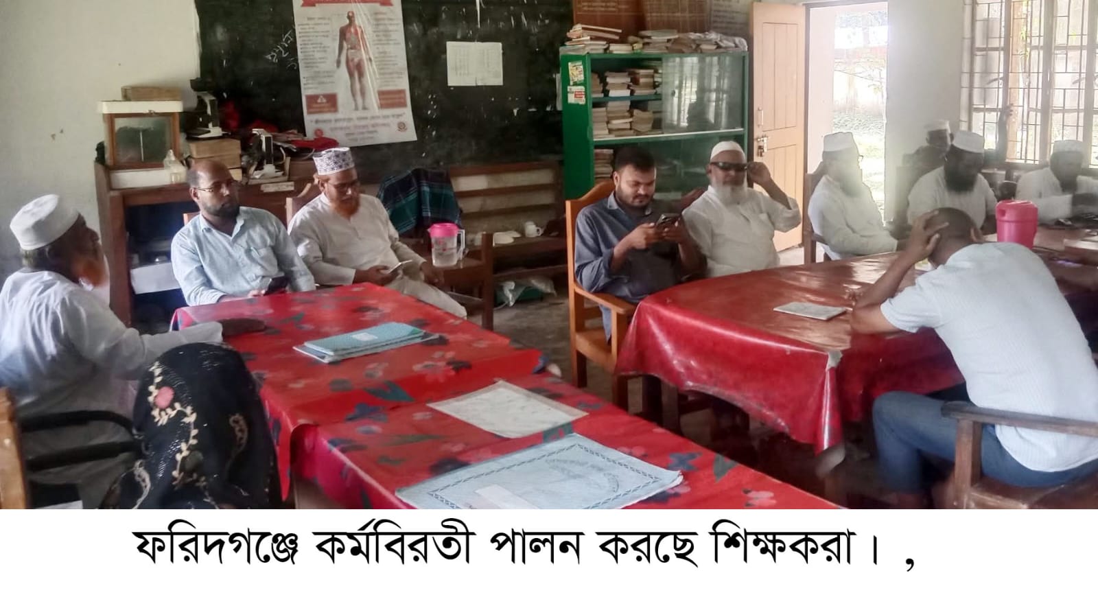 ফরিদগঞ্জে বেসরকারি শিক্ষকদের কর্মবিরতি চলছে