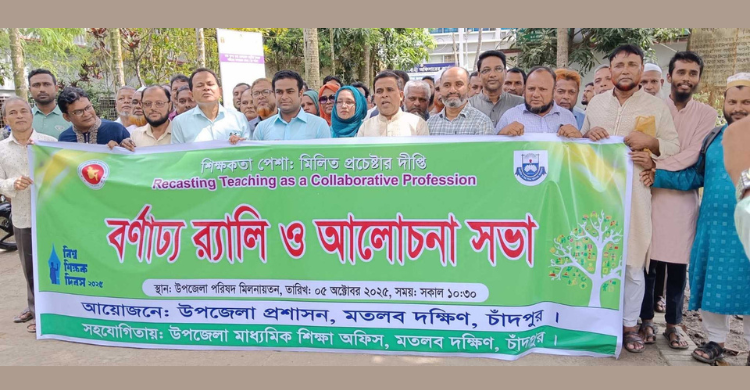 বিশ্ব শিক্ষক দিবস-২০২৫ উদযাপনে চাঁদপুরে বর্ণাঢ্য র্যালি ও আলোচনা সভা