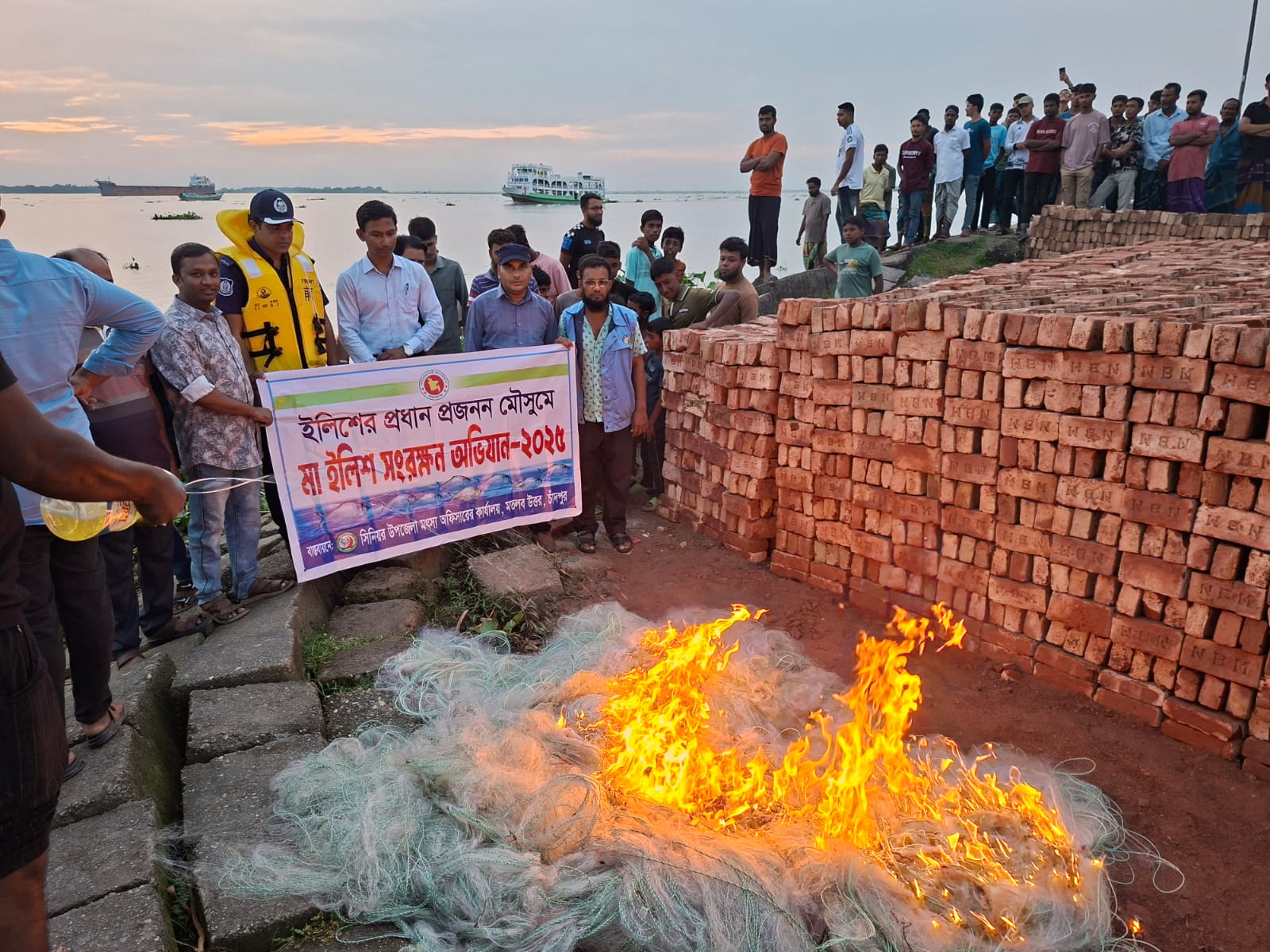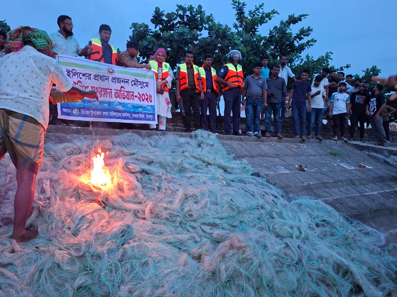 মতলব উত্তরে মেঘনা নদীতে অভিযানে ২০ হাজার মিটার কারেন্ট জাল জব্দ