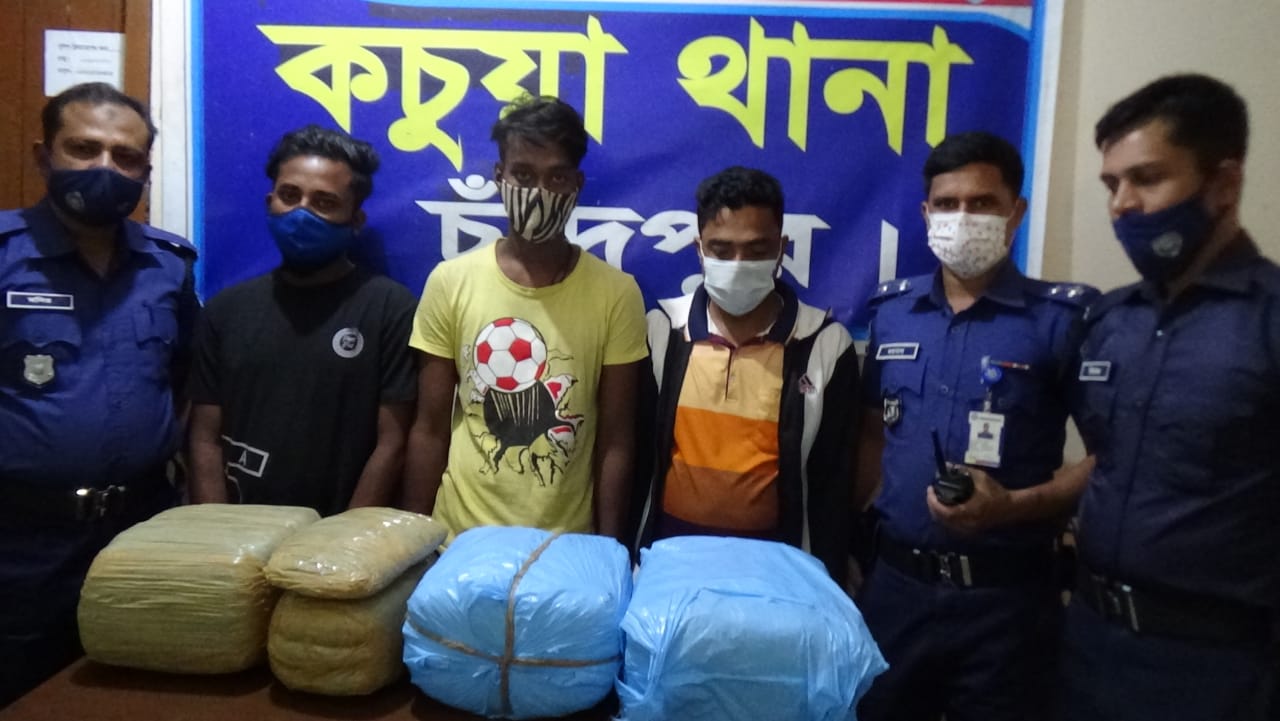 চাঁদপুরে ২২ কেজি গাঁজাসহ ৩ মাদক কারবারিকে আটক