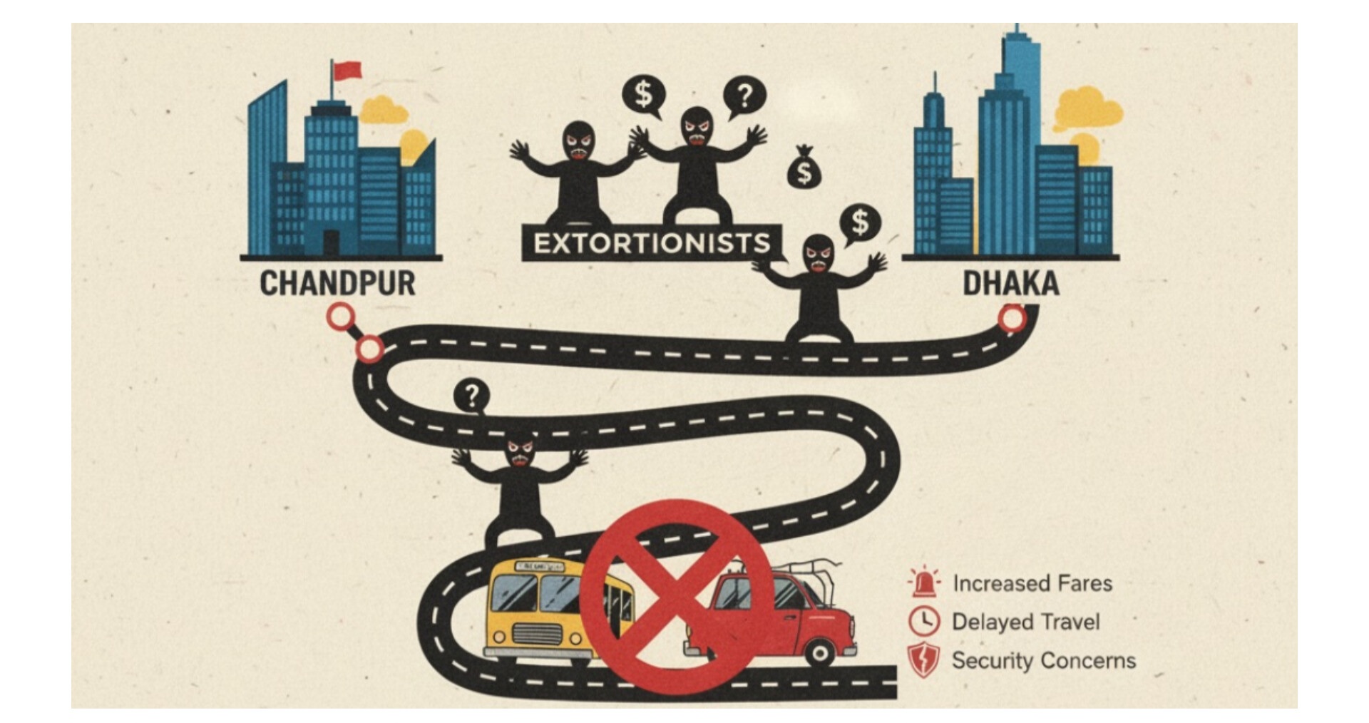 চাঁদাবাজির ফাঁদে চাঁদপুর-ঢাকার সংক্ষিপ্ত সড়ক-যাত্রা