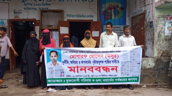 ফরিদগঞ্জে ইউপি সদস্যের বিরুদ্ধে মানববন্ধনে যুবদল নেতার বাধা, এলাকাবাসী ও ভুক্তভোগীদের ক্ষোভ