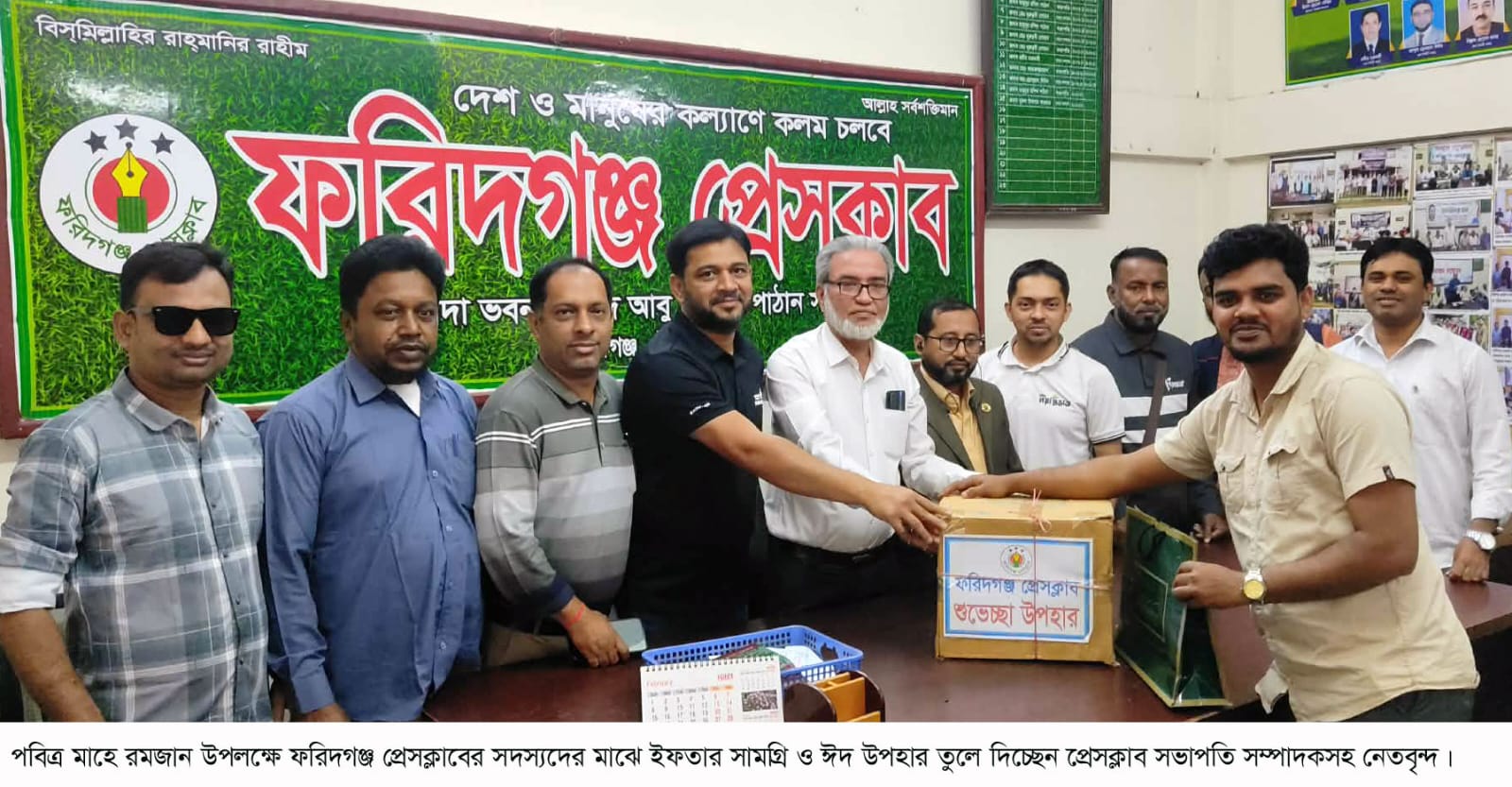 ফরিদগঞ্জ প্রেসক্লাবের সদস্যদের মাঝে ইফতার সামগ্রী ও ঈদ উপহার বিতরণ