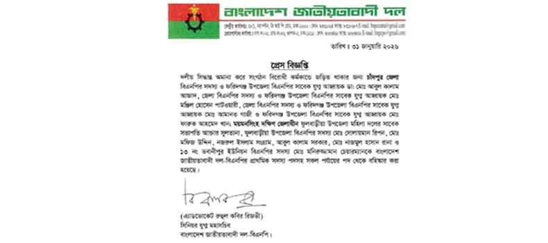 ফরিদগঞ্জের সাবেক পৌর মেয়রসহ ৪ বিএনপি নেতা বহিষ্কার