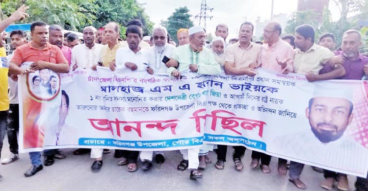 চাঁদপুর জেলা বিএনপির কমিটিতে এমএ হান্নানকে ১নং সদস্য করায় ফরিদগঞ্জে আনন্দ মিছিল