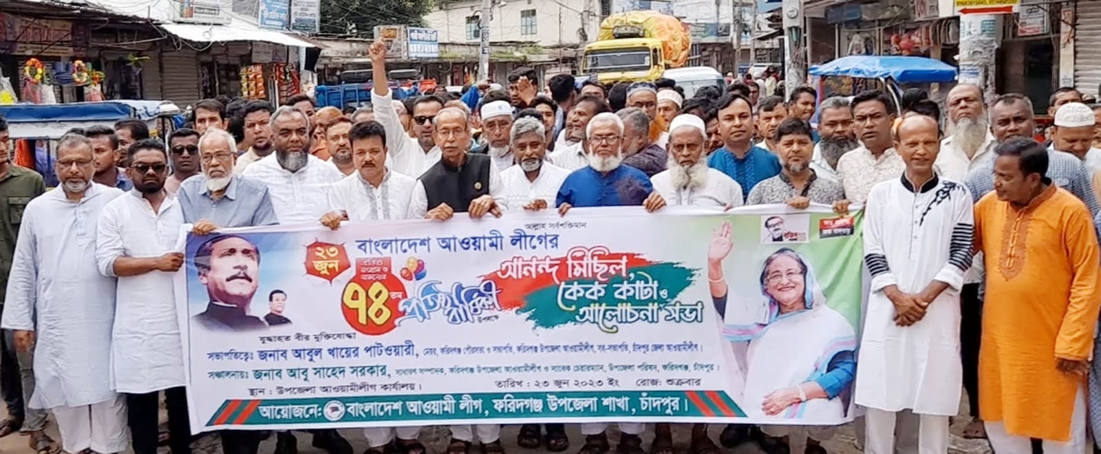 ফরিদগঞ্জে আওয়ামীলীগের প্রতিষ্ঠাবার্ষিকীতে র্যালী, সভা ও কেক কাটার অনুষ্ঠান