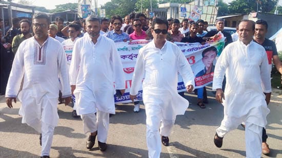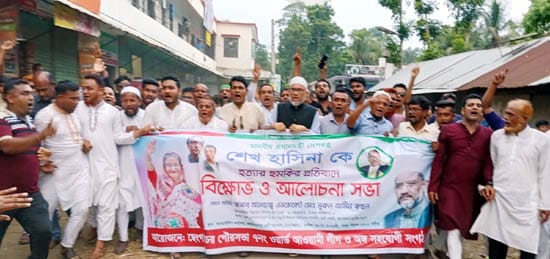 প্রধানমন্ত্রী শেখ হাসিনাকে হত্যার হুমকির প্রতিবাদে মতলব উত্তরে এসি মিজানের নেতৃত্বে বিক্ষোভ মিছিল