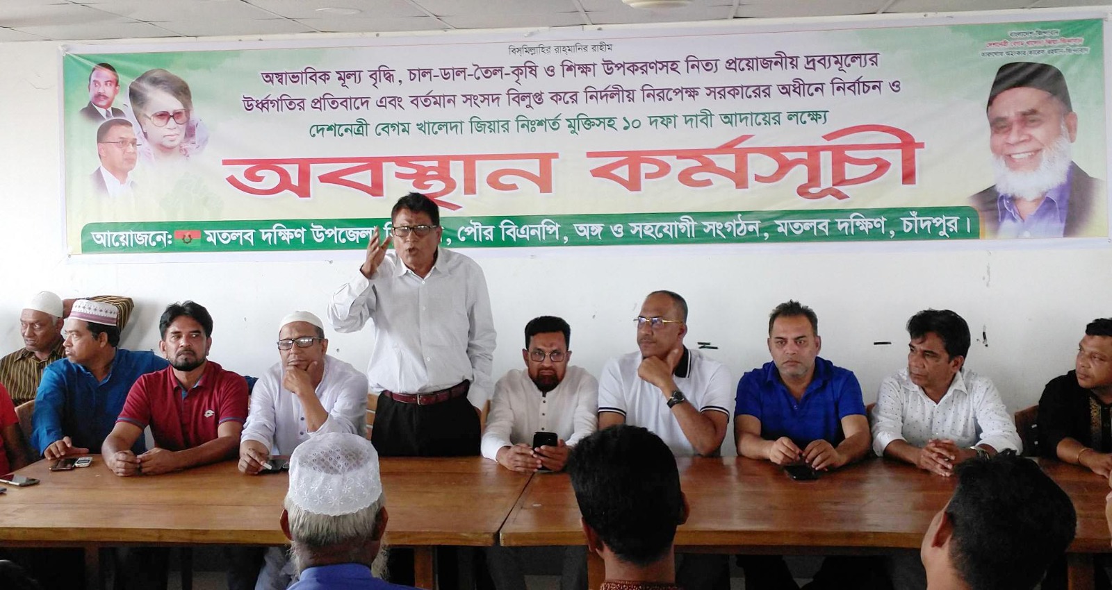 মতলব দক্ষিণে উপজেলা ও পৌর বিএনপির অবস্থান কর্মসূচি