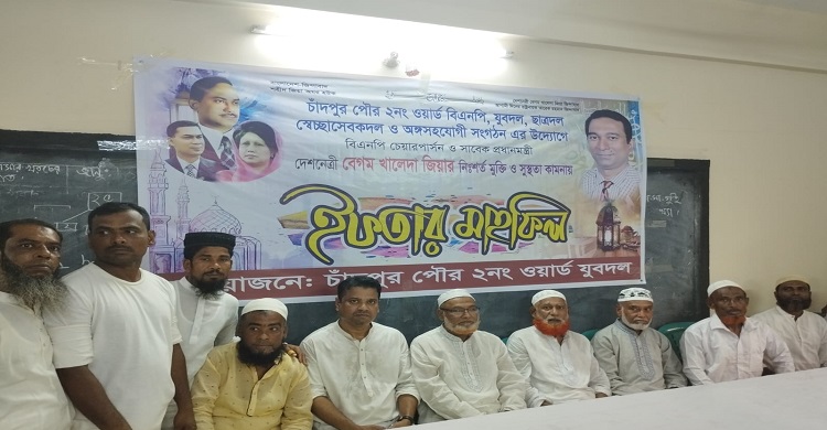 খালেদা জিয়ার মুক্তি ও সুস্থতা কামনায় চাঁদপুর পৌর ২নং ওয়ার্ড বিএনপি ও যুবদলের ইফতার মাহফিল