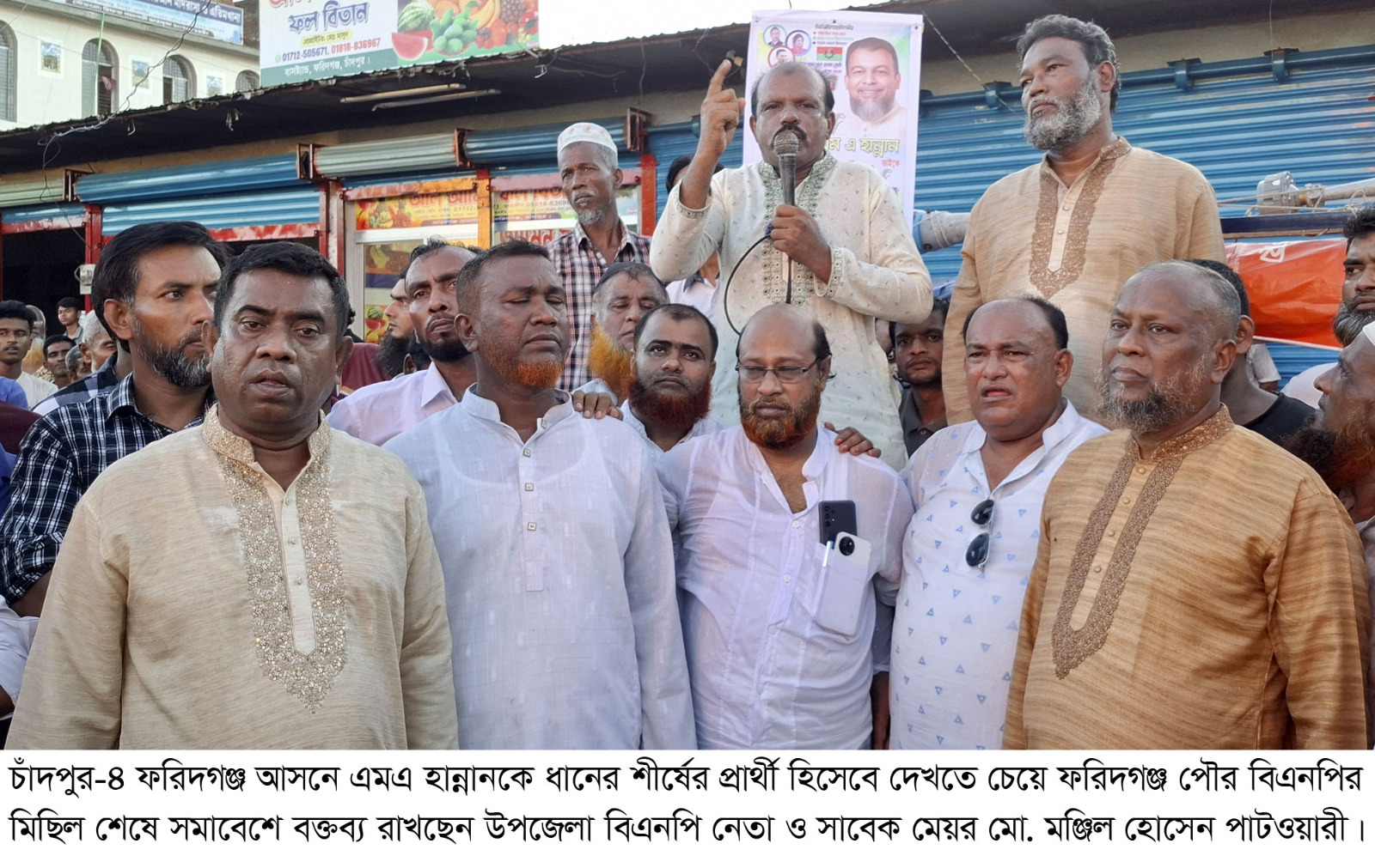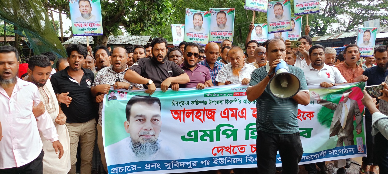 এম এ হান্নানকে বিএনপির মনোনয়ন প্রদানের দাবিতে ফরিদগঞ্জে পৌর বিএনপির মিছিল-সমাবেশ