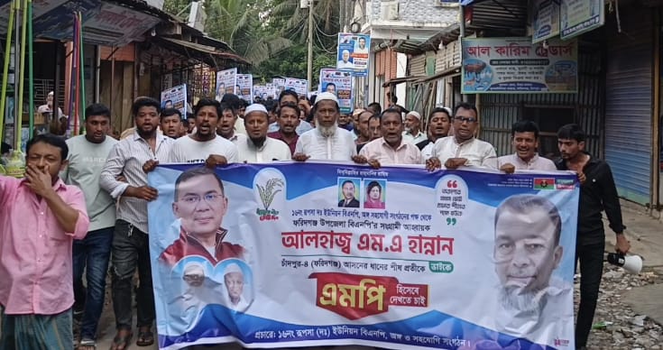 হাজীগঞ্জে ইঞ্জি. মমিনুল হকের পক্ষে ধানের শীষের সমর্থনে মিছিল