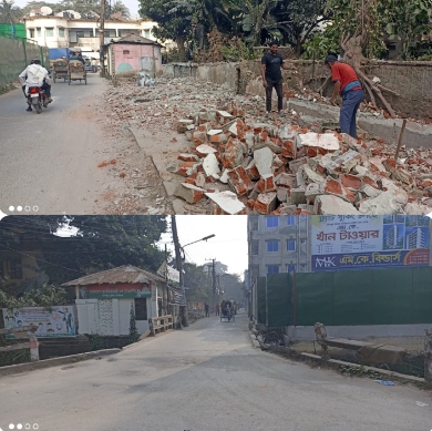 গত কয়েকদিন ধরে দেখা গেছে, মেথা রোড-এর পূর্ব পাশে থাকা বিভিন্ন দোকানপাট, ব্যবসা প্রতিষ্ঠান ও কিছু বসতঘর ভেঙ্গে অপসারণের কাজ শুরু হয়েছে।