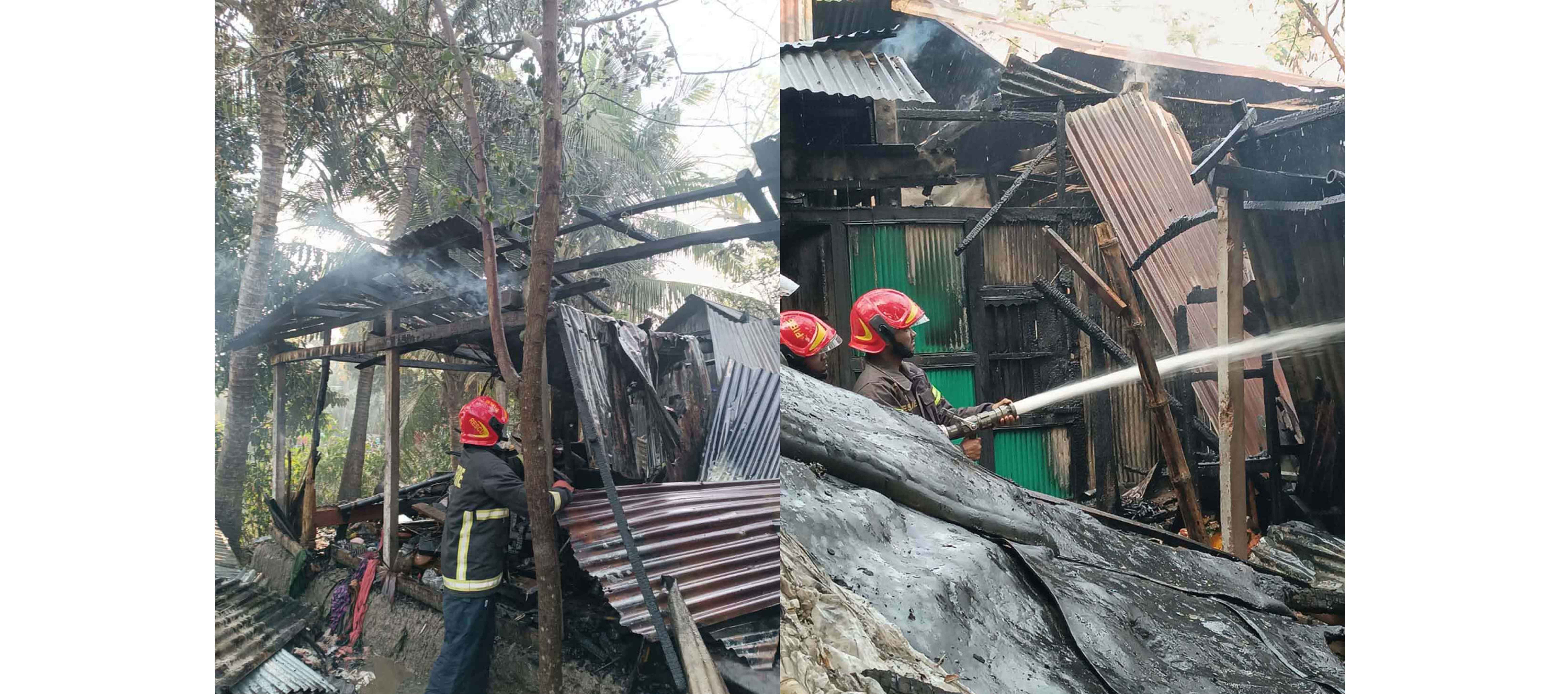 স্থানীয়রা জানান, শুক্রবার সকালে হঠাৎ ঘরের ভেতর থেকে আগুন ও ধোঁয়া বের হতে থাকে। আগুন দ্রুত চারদিকে ছড়িয়ে পড়ে। আগুনের লেলিহান শিখা ও কালো ধোঁয়া ধীরে ধীরে বাড়তে থাকে। এলাকার লোকজন পানি ও বালু দিয়ে আগুন নেভানোর চেষ্টা করে। ফায়ার সার্ভিসে খবর দিলে দমকলকর্মীরা এসে প্রায় আধা ঘন্টা কাজ করে আগুন নিয়ন্ত্রণে আনে। এর মধ্যে দুটি বসতঘর, একটি রান্না ঘর পুড়ে যায়।