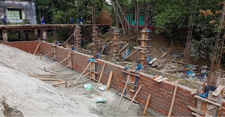 ছবি : কচুয়ার কাপিলাবাড়িতে সরকারি খালের ওপর অবৈধ স্থাপনা নির্মাণের একাংশ।