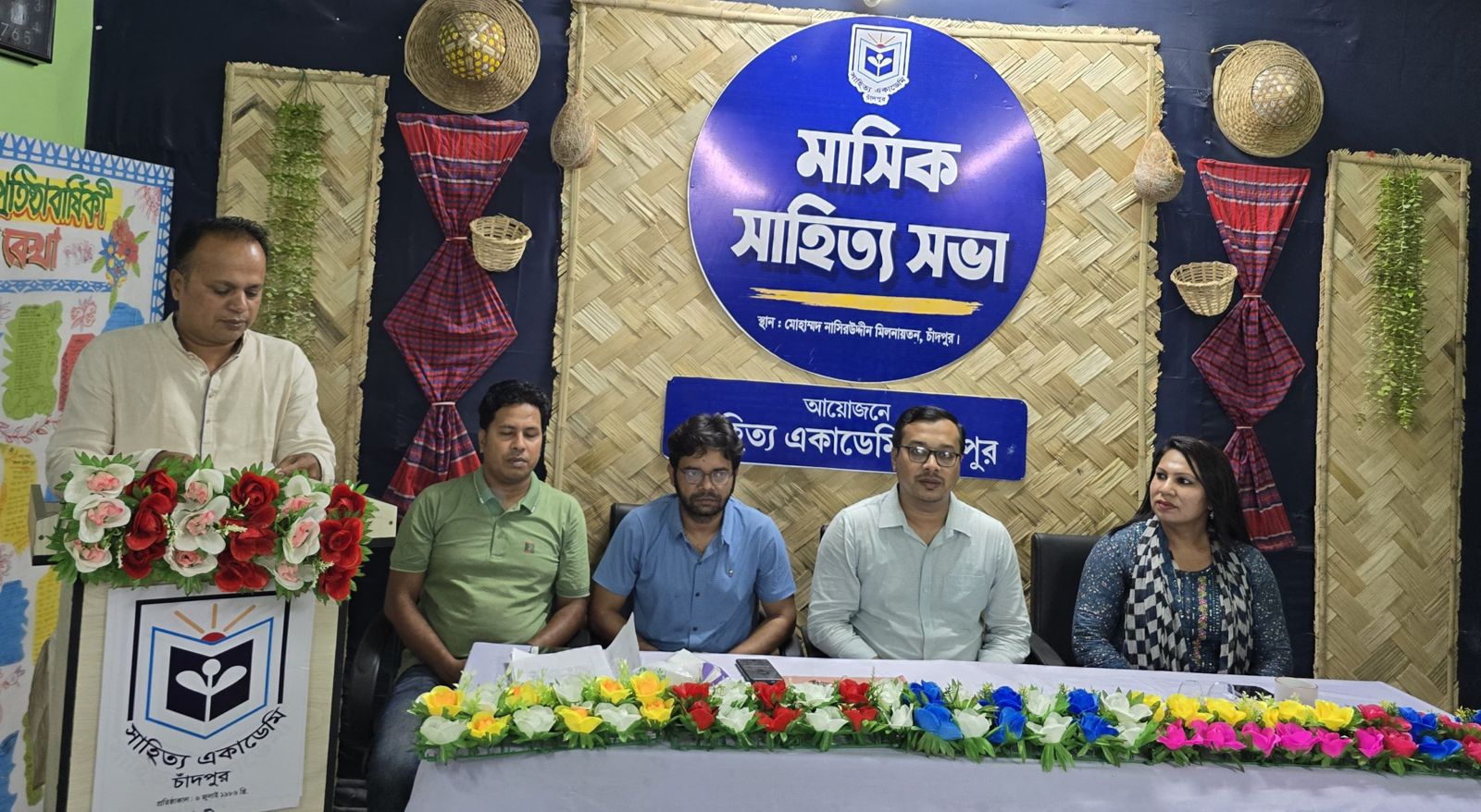 সাহিত্য একাডেমি চাঁদপুর-এর একাদশ (১১তম) সাহিত্য আসর অনুষ্ঠিত হয়েছে। শুক্রবার (২৪ এপ্রিল ২০২৬) একাডেমি মিলনায়তনে একাডেমির মহাপরিচালক কাদের পলাশের সভাপ্রধানে ও নির্বাহী সদস্য সুমন কুমার দত্তের পরিচালনায় এ সাহিত্য আসর কবি, সাহিত্যিক ও লেখকদের স্বরচিত কবিতা ও গল্প পাঠে প্রাণবন্ত হয়ে ওঠে। সভায় কবিতা পাঠ করেন মুহাম্মদ হানিফ, ইয়াছিন দেওয়ান ও মো. তানজিদ কোতয়াল। কবিতা নিয়ে আলোচনা করেন কবি ও লেখক নূরে আলম পাটোয়ারী ও খোকন মজুমদার। বক্তব্য রাখেন পরিচালক (গবেষণা) মুহাম্মদ ফরিদ হাসান, পরিচালক (সাহিত্য ও প্রকাশনা) মাইনুল ইসলাম মানিক, নির্বাহী সদস্য নুরুন্নাহার মুন্নি, উজ্জ্বল হোসাইন, সদস্য মোহাম্মদ হানিফ ও নূরে আলম পাটোয়ারী। উপস্থিত ছিলেন চাঁদপুর মাজহারুল হক বিএনএসবি চক্ষু হাসপাতালের মেডিকেল অফিসার মোহাম্মদ হানিফুর রহমান, নির্বাহী সদস্য মোখলেছুর রহমান ভূঁইয়া, সদস্য কাজী আশ্রাফুজ্জামান রাসেল, সাহিত্য অনুরাগী মাহির আহমেদ প্রমুখ।