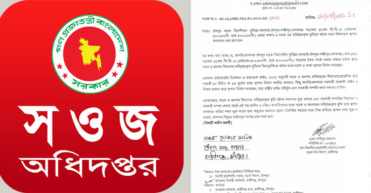 সওজের জমি দখলমুক্ত করতে উচ্ছেদ অভিযান ২২ এপ্রিল থেকে