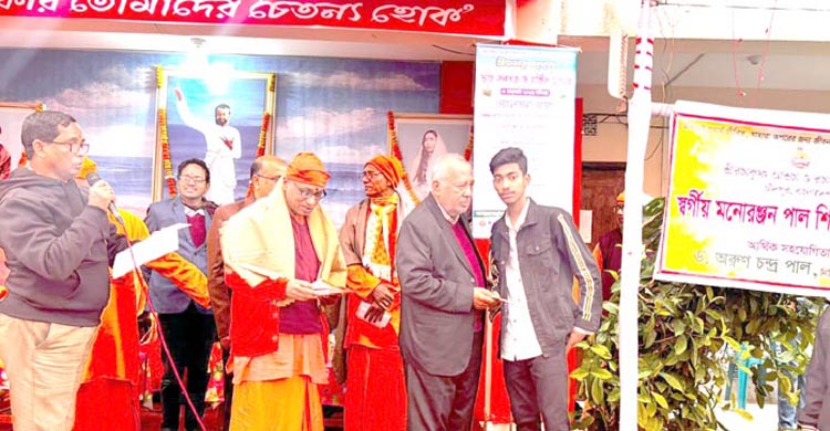চঁাদপুর জেলার হাজীগঞ্জ উপজেলার উচ্চঙ্গা গ্রামে ১৮ কার্তিক ১৩৪২ বঙ্গাব্দে জন্মগ্রহণকারী ও ২০ মাঘ ১৪১২ বঙ্গাব্দে প্রয়াত হওয়া মনোরঞ্জন পাল ছিলেন একজন সৎ, ধর্মপ্রাণ ও মানবিক গুণসম্পন্ন ব্যক্তি। সারা জীবন তিনি নৈতিকতা, শৃঙ্খলা ও মানবসেবাকে আদর্শ হিসেবে ধারণ করেছেন। তঁার জীবনাচরণ, সততা ও ধর্মীয় মূল্যবোধ পরিবার ও সমাজের জন্যে অনুকরণীয় হয়ে আছে। তঁার স্মৃতিকে চিরস্মরণীয় করে রাখার লক্ষ্যে তঁার নামে শিক্ষার্থীদের জন্যে শিক্ষাবৃত্তি প্রদানের উদ্যোগ গ্রহণ করেছেন তঁার কনিষ্ঠ পুত্র, আমেরিকা প্রবাসী প্রফেসর ড. অরুন চন্দ্র পাল । এই মহৎ উদ্যোগের অংশ হিসেবে শনিবার (৩ জানুয়ারি ২০২৬) চঁাদপুর রামকৃষ্ণ মিশনে এক অর্থবহ ও ভাবগম্ভীর অনুষ্ঠানের আয়োজন করা হয়। এ অনুষ্ঠানের মাধ্যমে দরিদ্র ও মেধাবী শিক্ষার্থীদের মাঝে ‘স্বর্গীয় মনোরঞ্জন পাল শিক্ষা বৃত্তি’ নামে শিক্ষার্থীদের মাঝে নগদ অর্থ প্রদান করা হয়। বৃত্তি বিতরণ কার্যক্রম পরিচালনা করেন চঁাদপুর রামকৃষ্ণ মিশনের অধ্যক্ষ স্বামী স্থিরাত্মানন্দজী মহারাজ। তিনি তঁার বক্তব্যে প্রয়াত ব্যক্তির জীবনাদর্শ, ধর্মনিষ্ঠা ও সমাজের প্রতি তঁার দায়বদ্ধতার কথা গভীর শ্রদ্ধার সঙ্গে স্মরণ করেন। তিনি বলেন, একজন মানুষের প্রকৃত পরিচয় তঁার কর্ম ও মূল্যবোধের মধ্যেই প্রকাশ পায়, আর শিক্ষাবৃত্তির মাধ্যমে সেই মূল্যবোধ ভবিষ্যৎ প্রজন্মের মাঝে ছড়িয়ে দেওয়াই এই উদ্যোগের মূল লক্ষ্য। বৃত্তি প্রদান অনুষ্ঠানে বিভিন্ন শ্রেণির নির্বাচিত শিক্ষার্থীরা উপস্থিত ছিলো। তাদের মধ্যে অনেকেই আর্থিক সীমাবদ্ধতার কারণে শিক্ষাজীবনে নানা চ্যালেঞ্জের মুখোমুখি হচ্ছিল। এই শিক্ষাবৃত্তি তাদের পড়াশোনায় নতুন আশার আলো জ্বালাবে এবং ভবিষ্যতে তারা আত্মনির্ভরশীল ও দায়িত্বশীল নাগরিক হিসেবে গড়ে উঠবে বলে প্রত্যাশা করা হয়। শিক্ষার্থীদের অভিভাবকরাও এই উদ্যোগের জন্যে গভীর কৃতজ্ঞতা প্রকাশ করেন। স্বামীজী শিক্ষার্থীদের উদ্দেশে বলেন, শিক্ষা কেবল জীবিকা অর্জনের মাধ্যম নয়, বরং মানুষ হওয়ার পথ। তিনি সকলকে সততা, মানবিকতা ও আত্মসংযমের সঙ্গে জীবন গড়ার আহ্বান জানান।