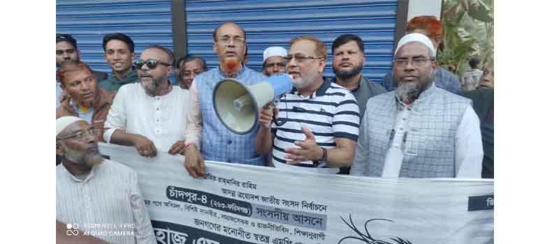 চাঁদপুর-৪ আসনে স্বতন্ত্র প্রার্থী এম এ হান্নানের পক্ষে পথসভা ও গণমিছিল