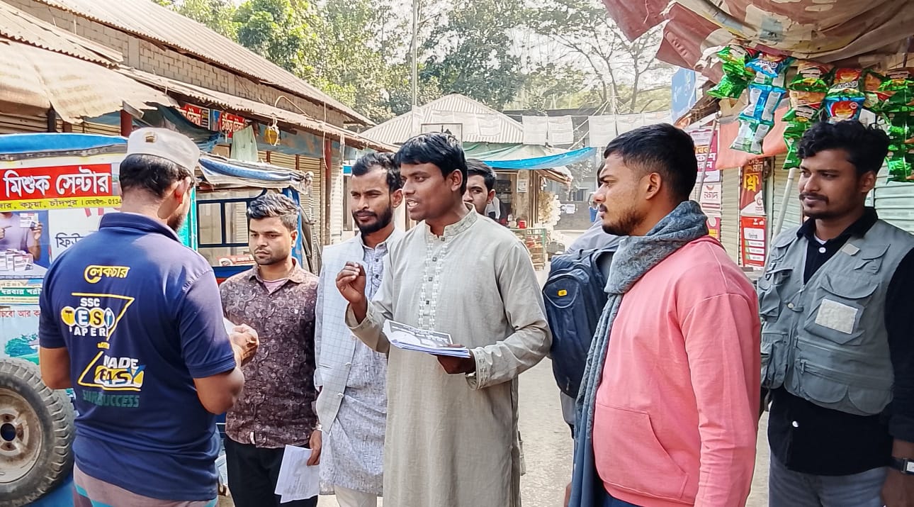 কচুয়ায় ধানের শীষের পক্ষে ঢাবি ছাত্রদল নেতা কাউছার আলমের গণসংযোগ